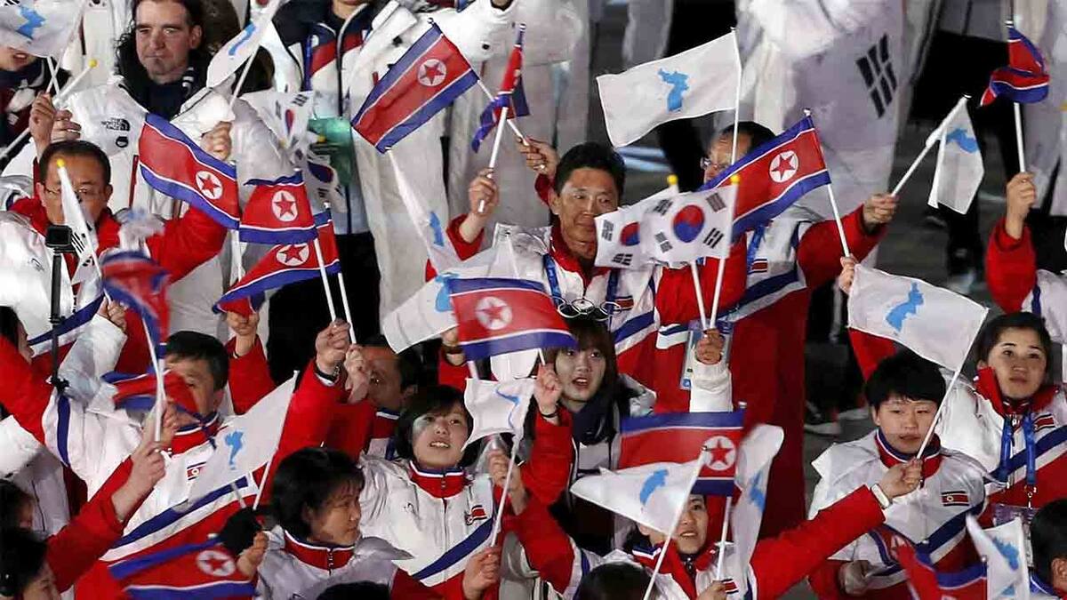 Aunque ambos países siguen técnicamente en guerra desde el conflicto que los enfrentó en los cincuenta, en ocasiones han logrado presentar equipos conjuntos y desfilar bajo una bandera unificada, la última vez en los Juegos de Invierno de PyeonChang, celebrados en territorio surcoreano en 2018.