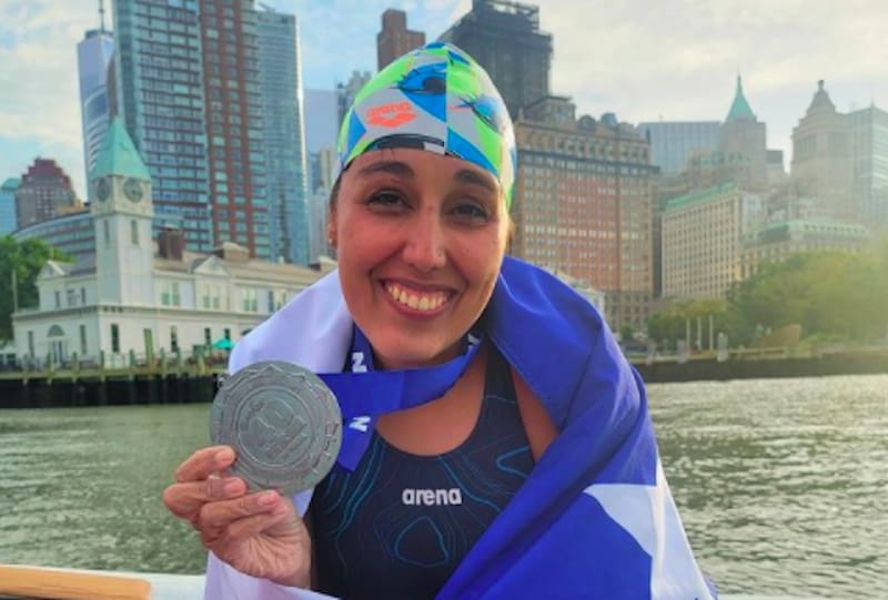 "Gracias a la garra de la mejor crew (tripulación) y de ustedes que nos acompañaron brazada a brazada", escribió junto a una fotografía en Instagram, donde aparece posando junto a su medalla de la competencia "40th Bridges Manhattan NY".