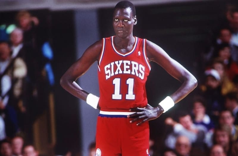 2. Manute Bol (2.31 m): El sudanés fue un pivot que se desempeñó en la NBA durante 11 años, periodo en el que vistió las camisetas de Washington Bullets, Golden State Warriors, Philadelphia 76ers y Miami Heat. Tiene el récord de tapones en un solo cuarto y se tuvo que retirar de la actividad en 1996 por una artritis que comenzó a afectar su salud. Falleció el 19 de junio de 2010 por una delicada enfermedad renal que sufrió mientras estaba hospitalizado en el Hospital de Virginia afectado por el Sindrome de Stevens Johnson.