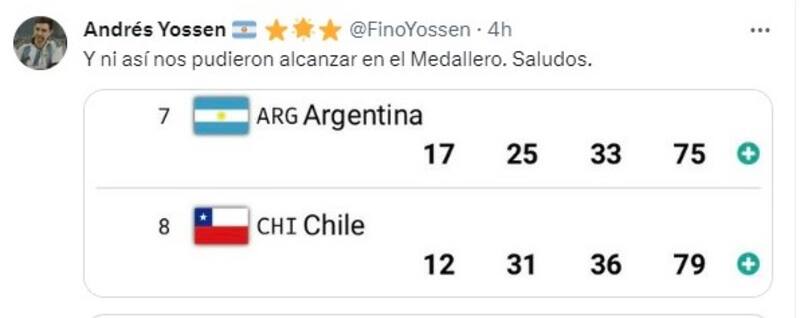 Y para cerrar, recordó que Argentina terminó arriba de Chile en el medallero de los Juegos Panamericanos.