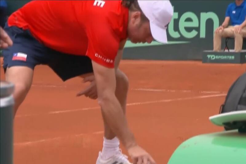 Garin se vio incómodo la mayor parte del partido, lo que gatilló que el capitán del equipo chileno, cuando el marcador iba 6-1 y 3-0 a favor del kazajo, aconsejara en la banca al tenista nacional dibujando con una botella en la tierra batida de La Serena una estrategia para ayudarlo a remontar el resultado. Finalmente, pese a un leve repunte en el segundo set ganando tres juegos, "Gago" terminó sucumbiendo y coronando un regreso para el olvido en la Copa Davis.