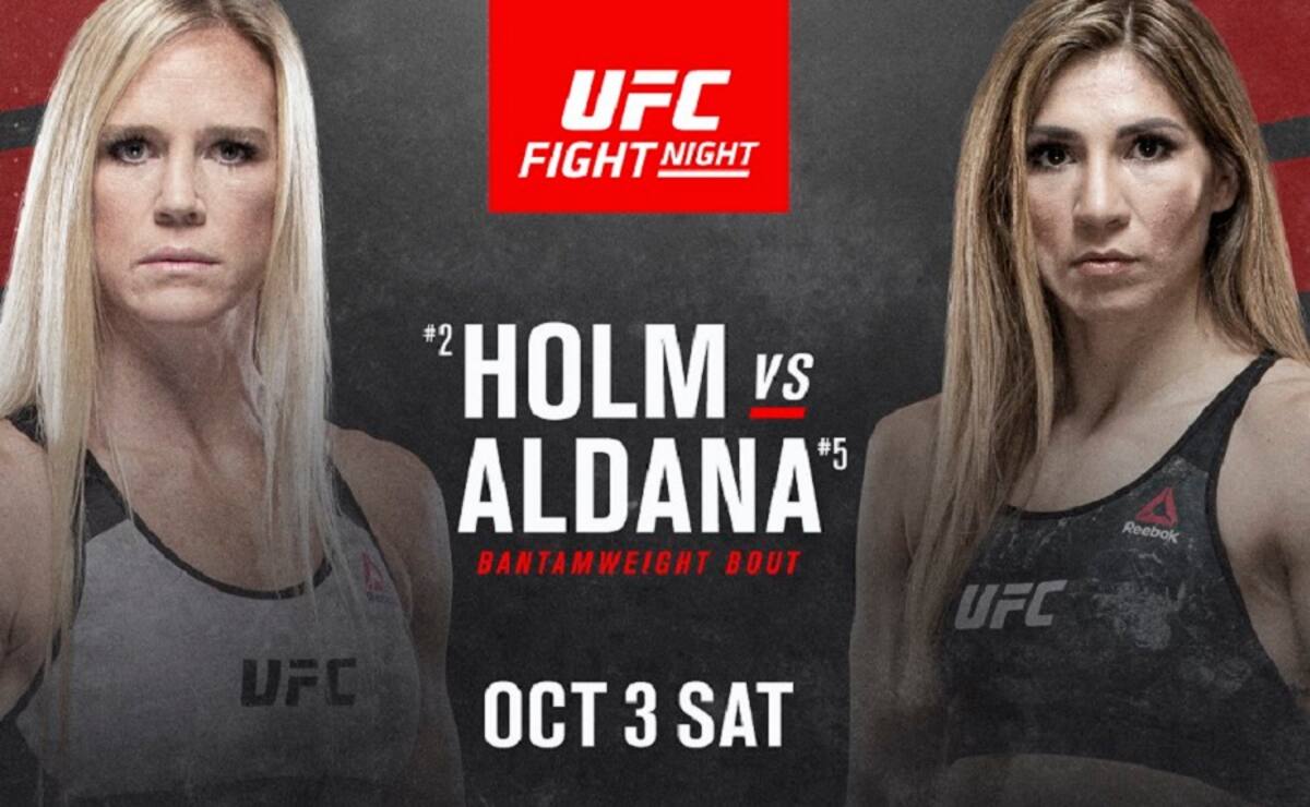 Esta última edición abrirá con un combate femenino entre la estadounidense Holly Holm, quien se ubica segunda en el ranking, y la mexicana Irene Aldana, quien está en el sexto lugar de la categoría Gallo de mujeres.