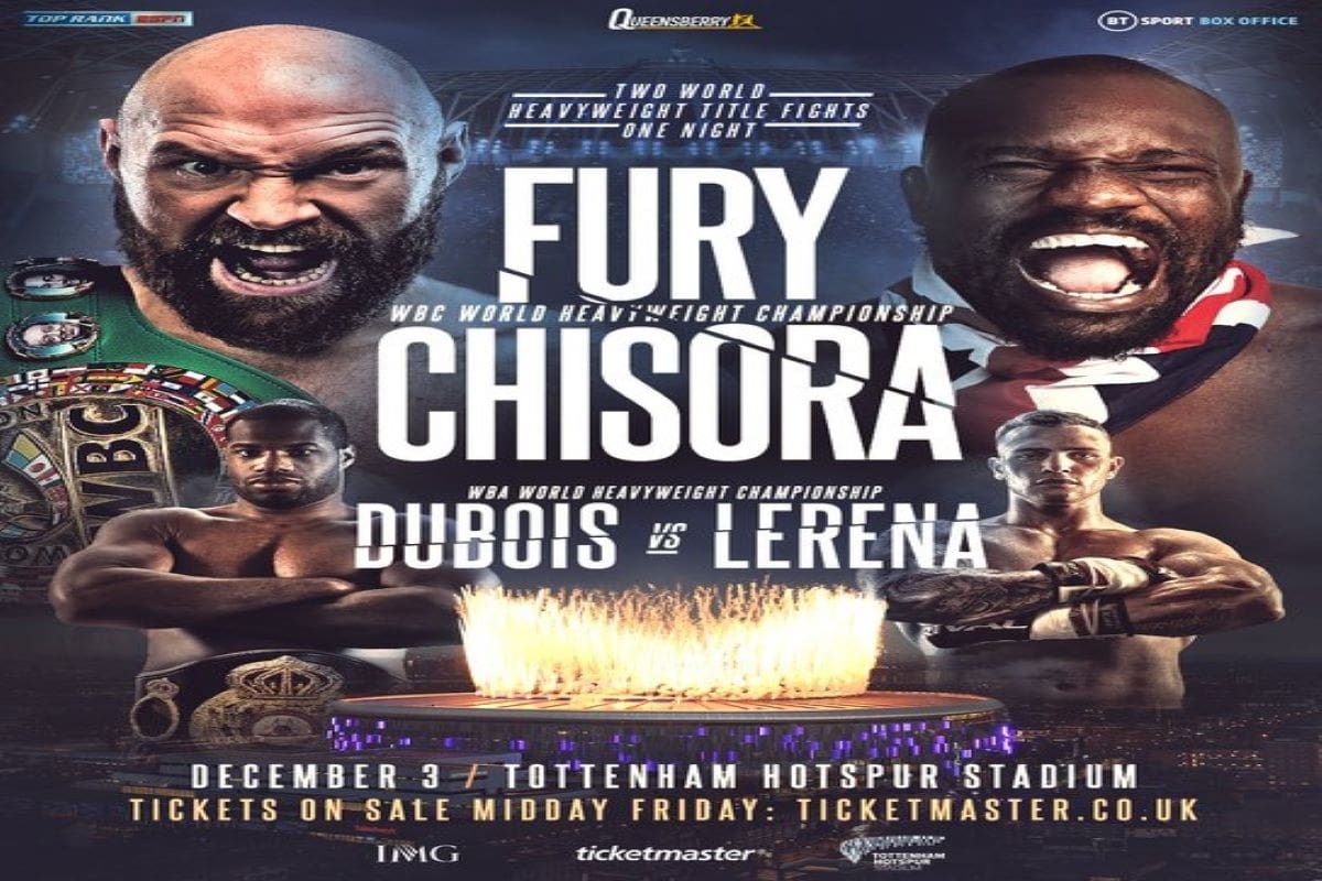 Fury y Chisora se enfrentarán el próximo sábado 3 de diciembre en el Tottenham Hotspur Stadium, mismo escenario en el que al actual campeòn unificado de la AMB, FIB, OMB y la IBO, Oleksandr Usyk, destronó al británico Anthony Joshua en septiembre de 2021.
