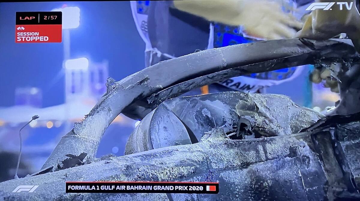 En la primera vuelta del Gran Premio de Baréin, Grosjean perdió el control del vehículo e impactó contra una de las vallas de contención. El choque fue de tal violencia que el auto se partió en dos y luego se prendió fuego.