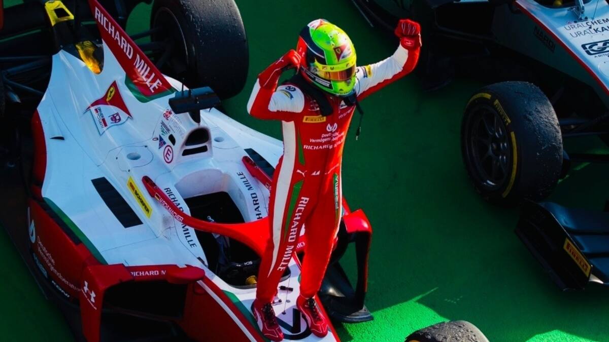 Revisa el momento en que Schumacher se proclamó campeón de la F2 y su festejo en redes sociales: