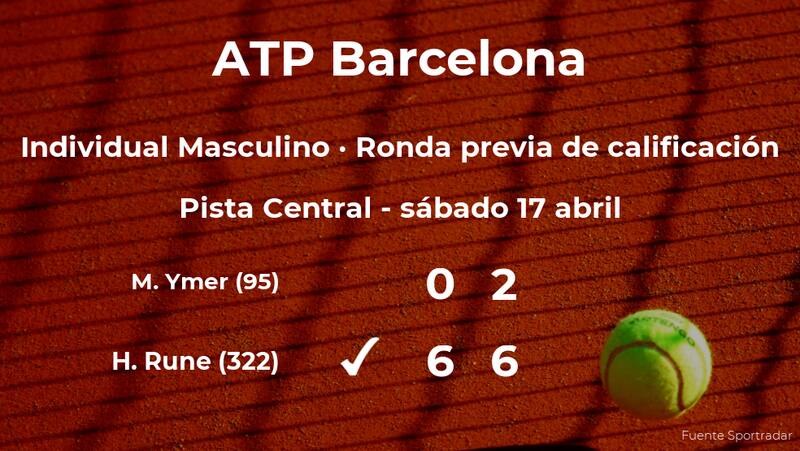 Holger Vitus Nodskov Rune, danés, número 322 de la ATP, venció en la ronda previa de calificación del torneo ATP 500 de Barcelona en cincuenta y cinco minutos por 6-0 y 6-2 a Mikael Ymer, tenista sueco, número 95 de la ATP. Con este resultado, seguiremos viendo al jugador en la siguiente ronda del torneo ATP 500 de Barcelona.