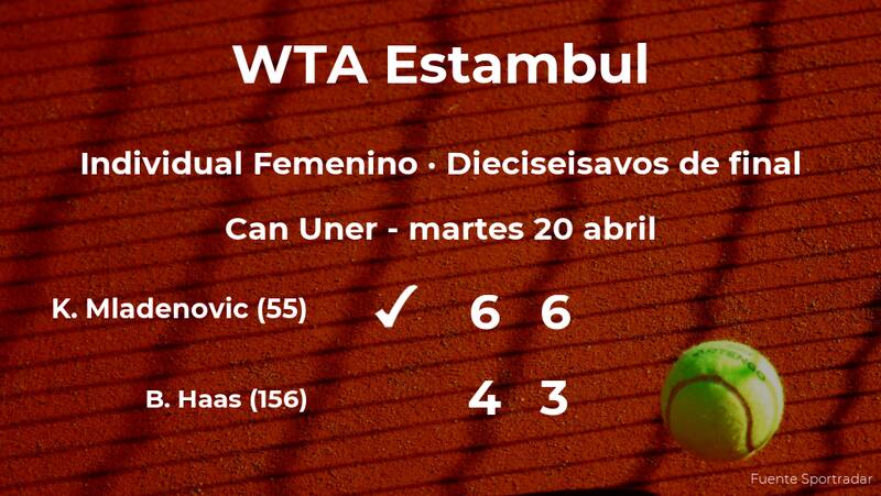 Kristina Mladenovic, francesa, número 55 de la WTA, cumplió las previsiones al vencer por 6-4 y 6-3 en una hora y veintiun minutos a Barbara Haas, tenista austriaca, número 156 de la WTA, en los dieciseisavos de final del torneo WTA 250 de Estambul. Con este resultado, podremos seguir viendo a la vencedora del partido en la siguiente fase del torneo WTA 250 de Estambul, los octavos de final.