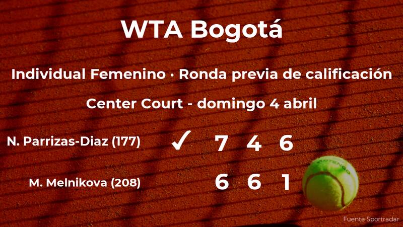Nuria Parrizas-Diaz, española, número 177 de la WTA, cumplió las previsiones al ganar en dos horas y veinticuatro minutos por 7-6, 4-6 y 6-1 a la rusa Marina Melnikova, número 208 de la WTA, en la ronda previa de calificación del torneo WTA 250 de Bogotá. Tras este resultado, veremos a la jugadora en la siguiente ronda del torneo WTA 250 de Bogotá.
