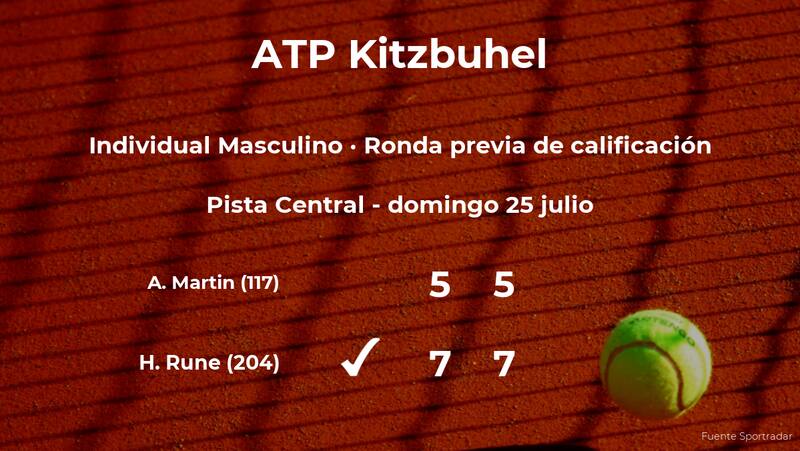 El jugador danés Holger Vitus Nodskov Rune, número 204 de la ATP, cumplió los pronósticos al vencer en dos horas por 7-5 y 7-5 al tenista eslovaco Andrej Martin, número 117 de la ATP, en la ronda previa de calificación del torneo ATP 250 de Kitzbuehel. Con este resultado, el ganador estará en la siguiente ronda del torneo ATP 250 de Kitzbuehel.