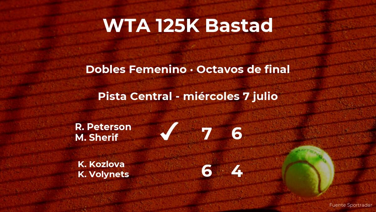 La tenista sueca Rebecca Peterson, número 423 de la WTA y la jugadora egipcia Mayar Sherif, número 190 de la WTA vencieron en los octavos de final del torneo WTA 125 de Bastad por 7(7)-6(5) y 6-4 en una hora y treinta y nueve minutos a la ucraniana Kateryna Kozlova y a la jugadora estadounidense Katie Volynets. Con este resultado, la pareja consigue la plaza para los cuartos de final del torneo WTA 125 de Bastad.