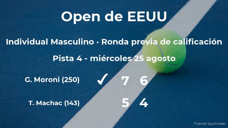 Gian Marco Moroni, italiano, número 250 de la ATP, dio la campanada al ganar en una hora y cuarenta y un minutos por 7-5 y 6-4 al jugador checo Tomas Machac, número 143 de la ATP, en la ronda previa de calificación del US Open. Con este resultado, el ganador logra sumar nuevos puntos a su ranking para llegar a participar en el US Open.