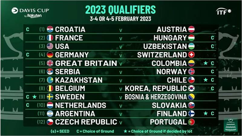 Así quedaron los cruces de las clasificatorias de la Copa Davis 2023:
