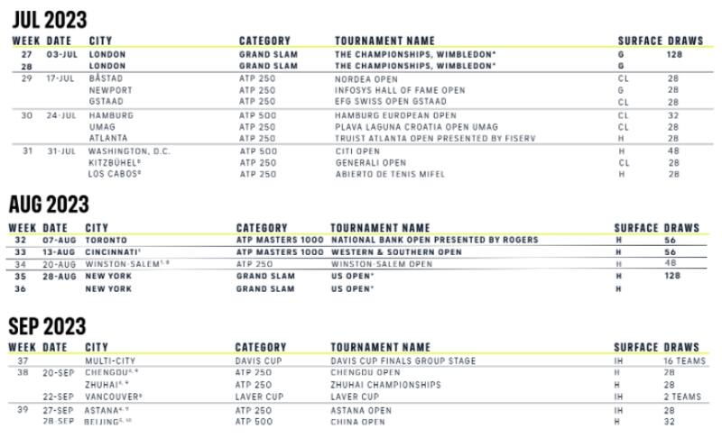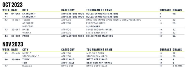 En ese sentido, también resalta la aparición de China como anfitrión de cuatro torneos: los ATP 250 de Chengdu y Zhuhai, el ATP 500 de Beijing y el propio Masters 1000 de Shanghai mencionado anteriormente, que estará viendo acción a partir del 4 de octubre.