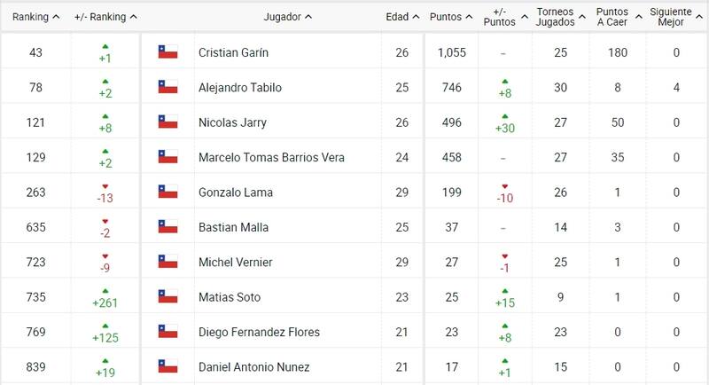 Los que sufrieron en esta actualización del ranking ATP fueron Gonzalo Lama, que descendió drásticamente 13 puestos, Bastián Malla, que cayó en dos escalones y, finalmente, Michel Vernier, que sufrió en la clasificatoria al quedar en dos posiciones bajo lo conseguido en la última semana.