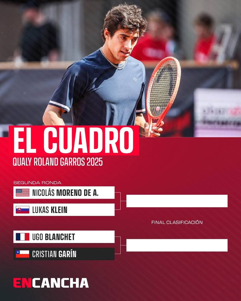 Hoy Garin (122°) vuelve a la cancha para enfrentarse a otro jugador local, Ugo Blanchet (193°). Será el segundo duelo entre ambos, con el galo imponiéndose hace un año, también en la fase previa del Grand Slam parisino.
