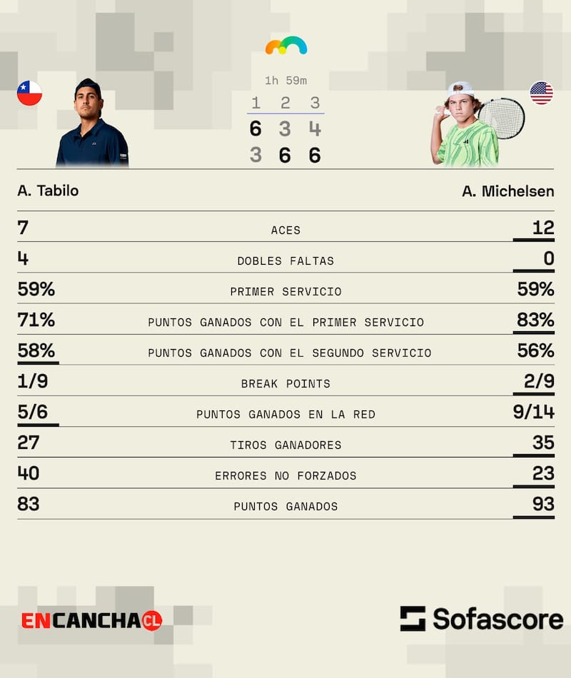 Para el set decisivo, el punto clave fue en el 3-3. Tabilo no estuvo fino con su saque, cometió dos doble faltas y Michelsen quebró en el deuce para sentenciar. De allí en adelante, solo le bastó al californiano con mantener su saque para quedarse con la victoria.
