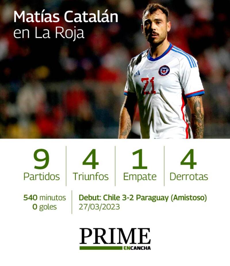 Fue sorpresivo cuando el defensor Matías Catalán apareció por primera vez defendiendo la camiseta de la Selección Chilena, el 27 de marzo de 2023, en un amistoso ante Paraguay. Ese día, en el Estadio Monumental, jugó apenas un par de minutos (ingresó en los descuentos por Víctor Felipe Méndez), pero sin dudas que su presencia llamó la atención. Aunque el folclore dice que ya desde la época de Jorge Sampaoli al mando de La Roja lo andaban buscando, recién con Eduardo Berizzo al frente del equipo se concretó la posibilidad.