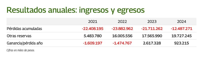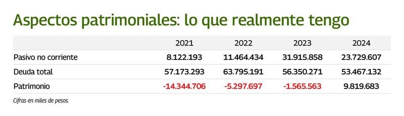 De todas formas, las deudas de corto y largo plazo (53.467 millones de pesos) superan en más de 5 veces el patrimonio de la corporación, por lo que queda mucho camino por mejorar aún.