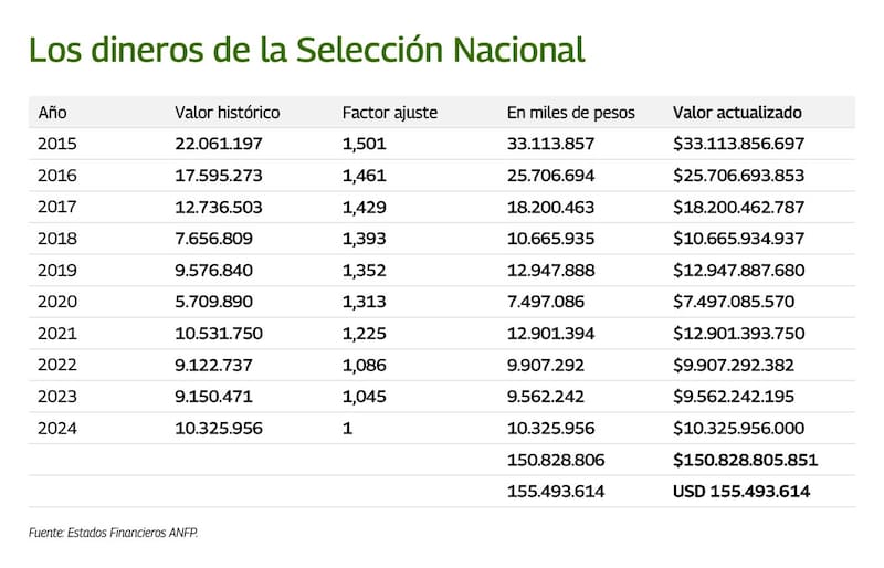 En los estados financieros disponibles en la sección gestión financiera de la ANFP, esto es, desde el año 2015, los gastos de la “selección absoluta” (revelados en dichos informes) suman, en valores actualizados a diciembre de 2024, más de 150 mil millones de pesos.
