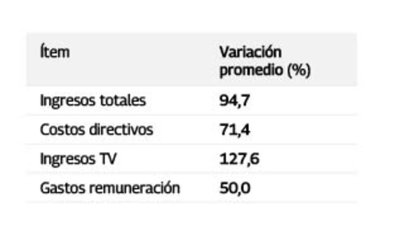 En promedio, los clubes que ascienden experimentan un aumento del 94% en sus ingresos totales al año siguiente, casi duplicándolos. Esta cifra incluye recaudaciones, venta de jugadores, publicidad y, especialmente, derechos de televisión, que se disparan un 127%.