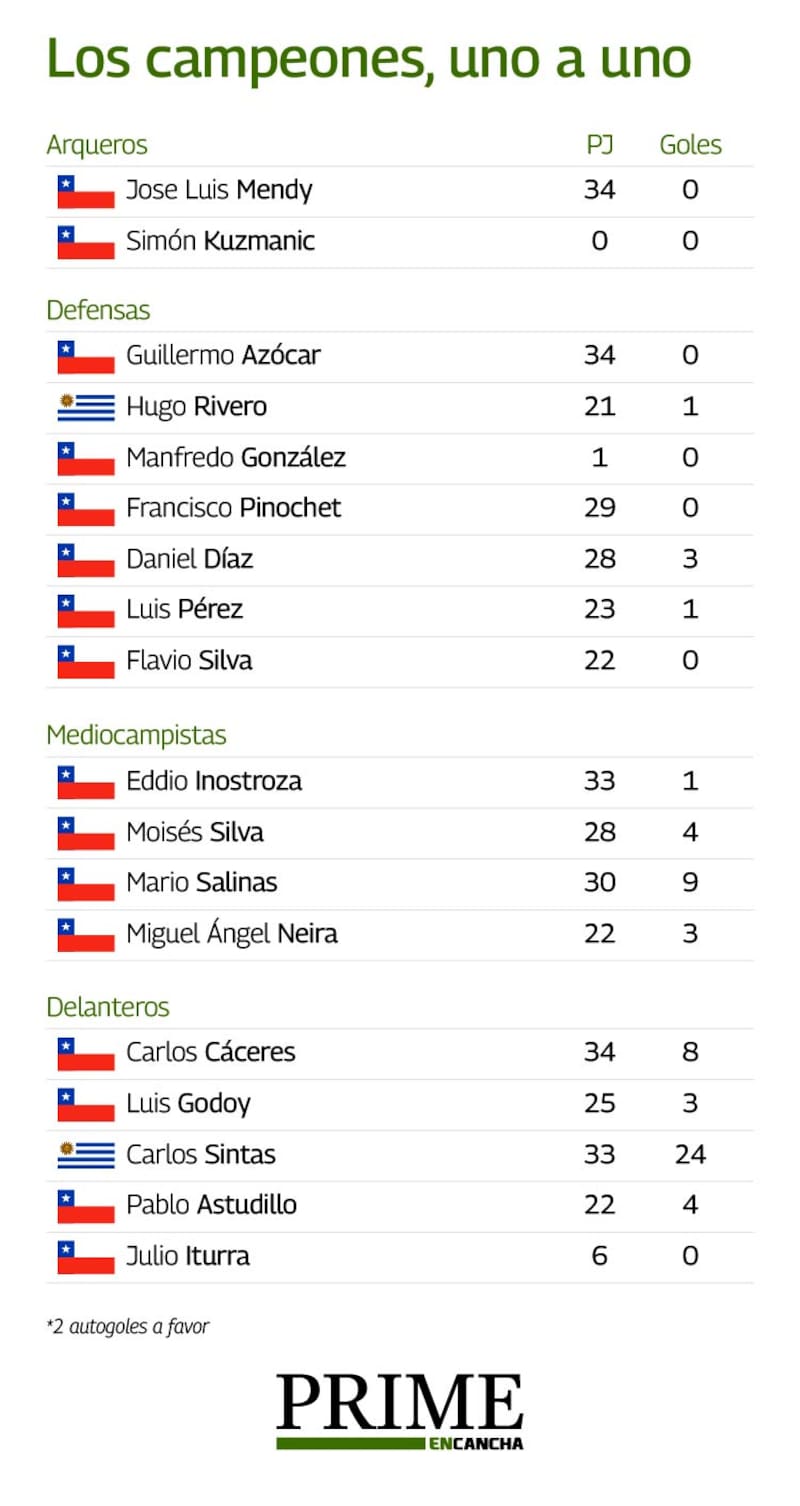 - “Ganamos ese campeonato porque todos estuvimos comprometidos con esa idea. Y cuando digo todos, hablo de los jugadores y sus familias. Era un grupo maravilloso, dentro y fuera de la cancha”, recuera Eddio Inostroza.