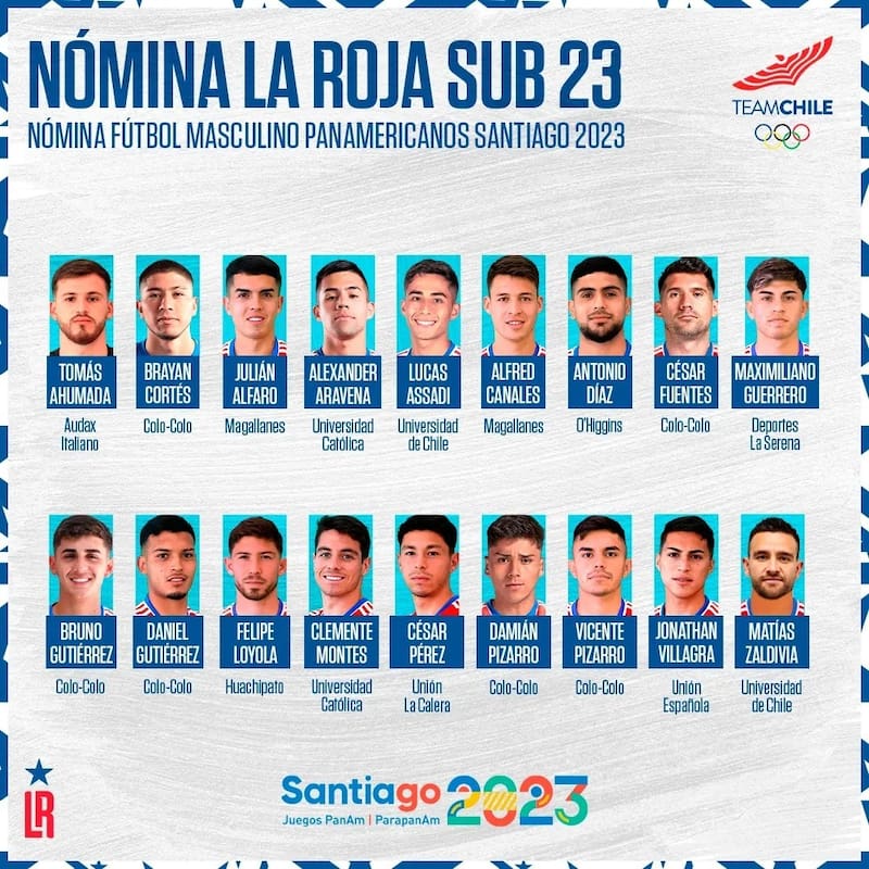 Con Brayan Cortés y César Fuentes de Colo Colo y Matías Zaldivia de La U como refuerzos sin límite de edad, el entrenador de la Selección Chilena, Eduardo Berizzo, entregó este martes la convocatoria oficial que representará a nuestro país en los Juegos Panamericanos Santiago 2023.