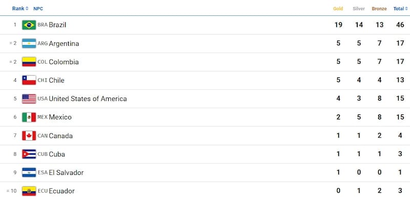 Revisa cómo va el medallero de los Juegos Parapanamericanos: