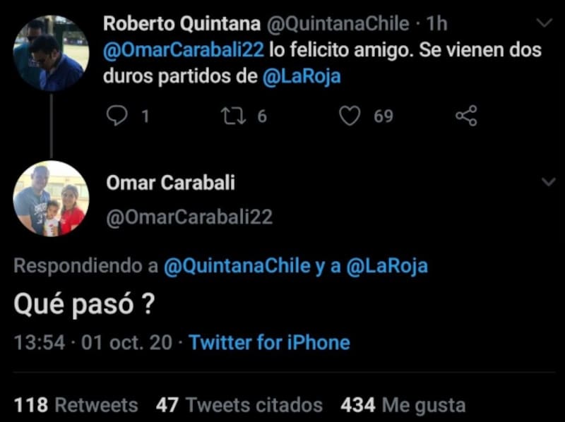 "¿Qué pasó?" fue la respuesta de Omar Carabalí cuando un amigo lo felicitó por Twitter cerca de las 2 de la tarde de este jueves. La razón: Reinaldo Rueda lo acababa de convocar a la Selección Chilena.