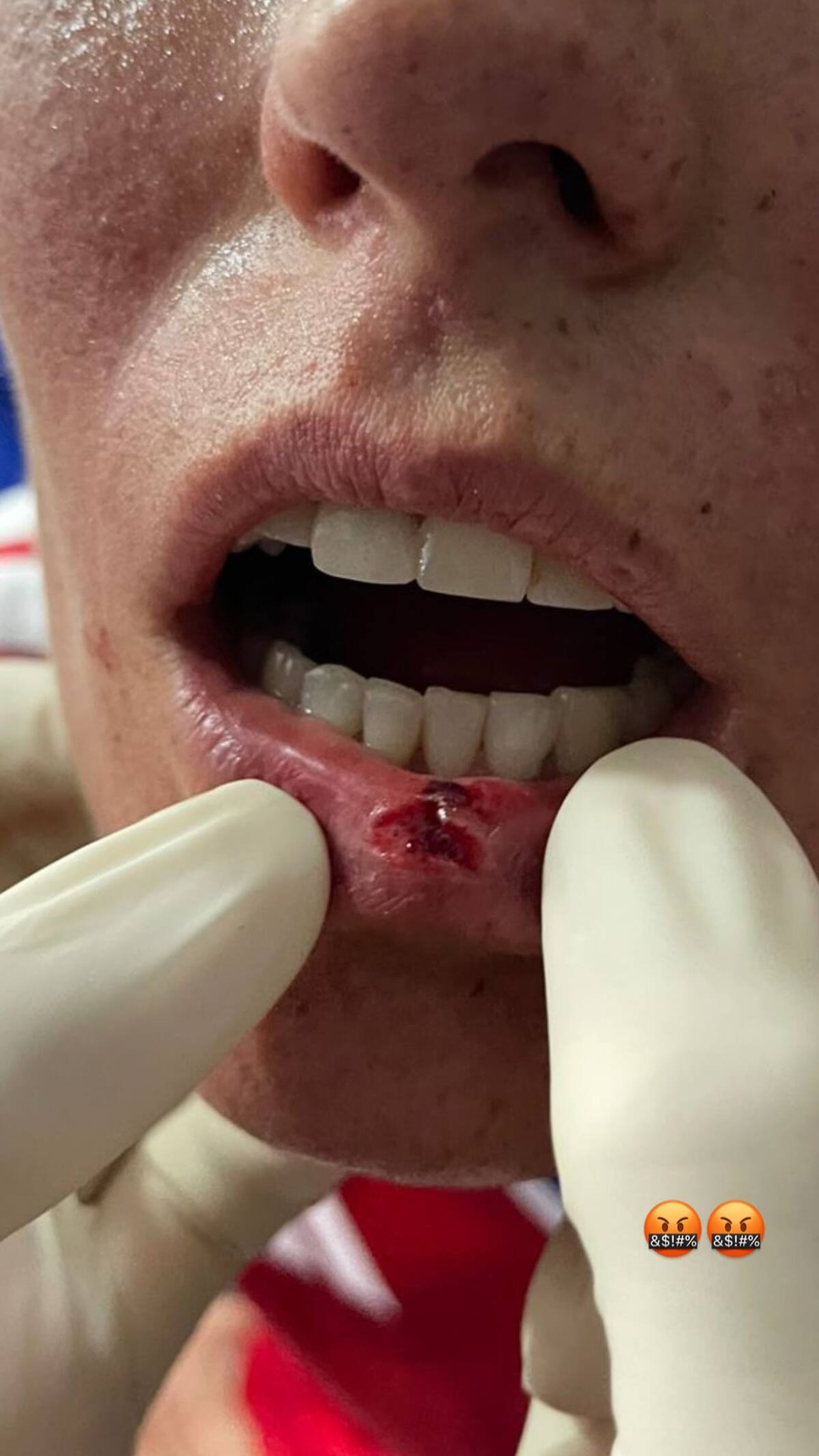 En una clásica refriega durante un balón detenido, la central paraguay Fiorela Martínez le propinó a la nacida en Manises, Comunidad Valenciana, un tremendo puñetazo que le partió el labio.