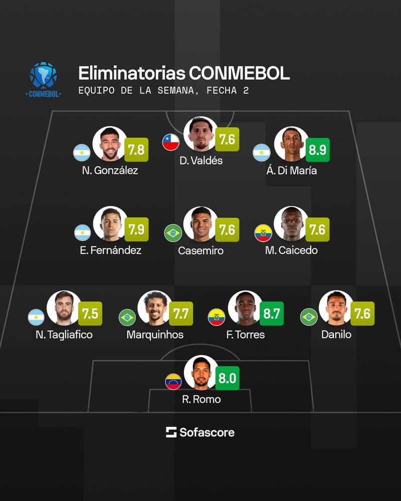 Para Sofascore, cuatro argentinos, tres brasileños, dos ecuatorianos, un venezolano y un chileno componen el elenco de ensueño de la segunda fecha: