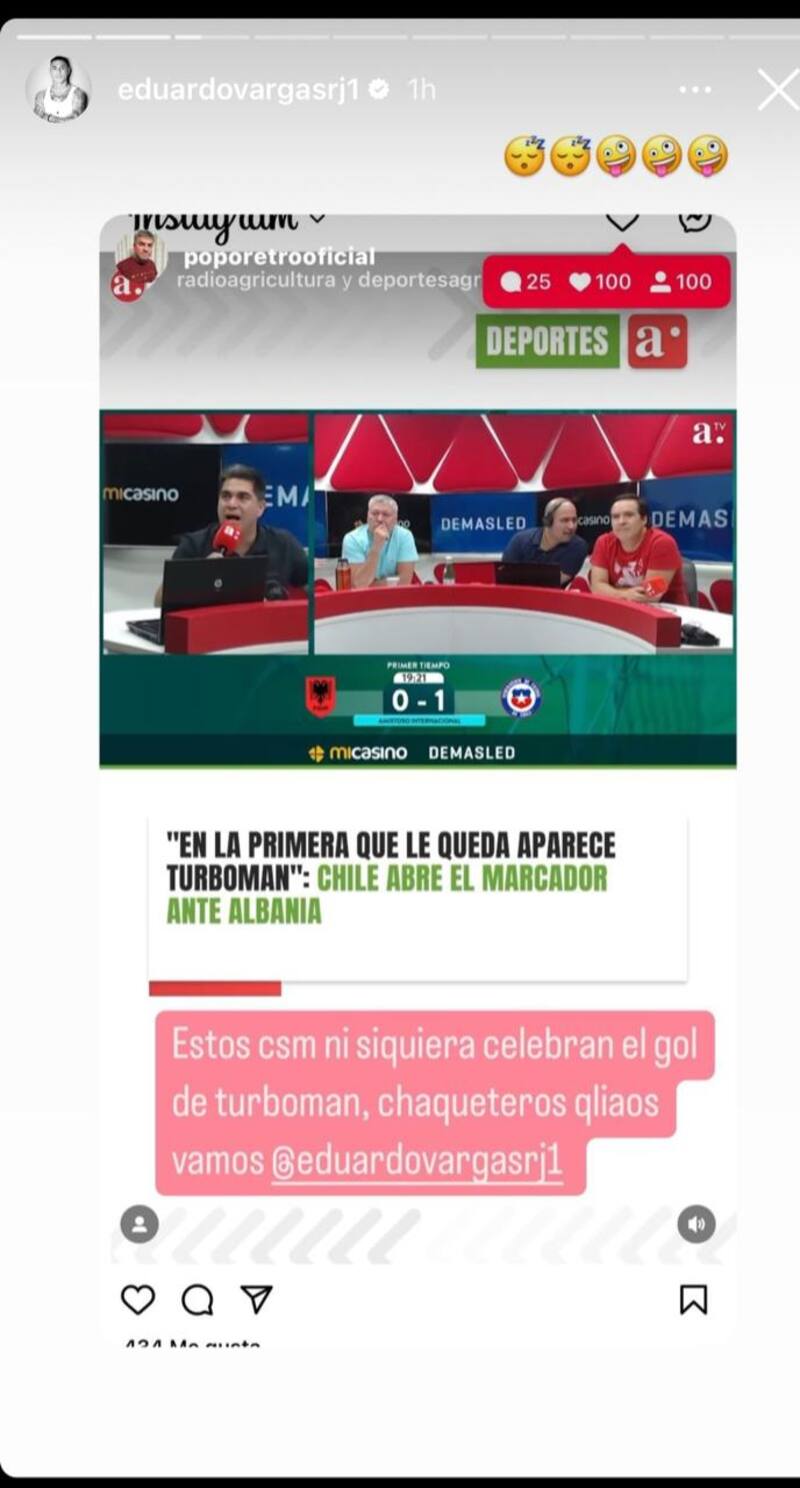 FOTO | La publicación en Instagram que Eduardo Vargas celebró