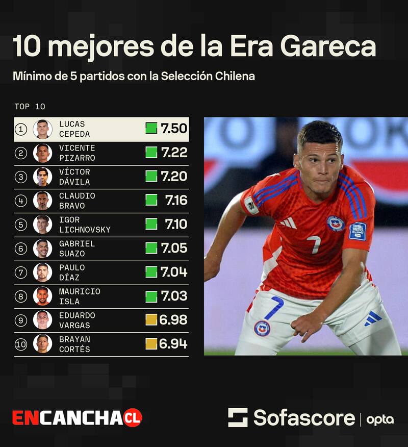 En ese contexto, el futbolista que mejor rendimiento mostró es el colocolino Lucas Cepeda, quien acumula una evaluación de 7.50, seguido por Vicente Pizarro (7.22) y Víctor Dávila (7.20).