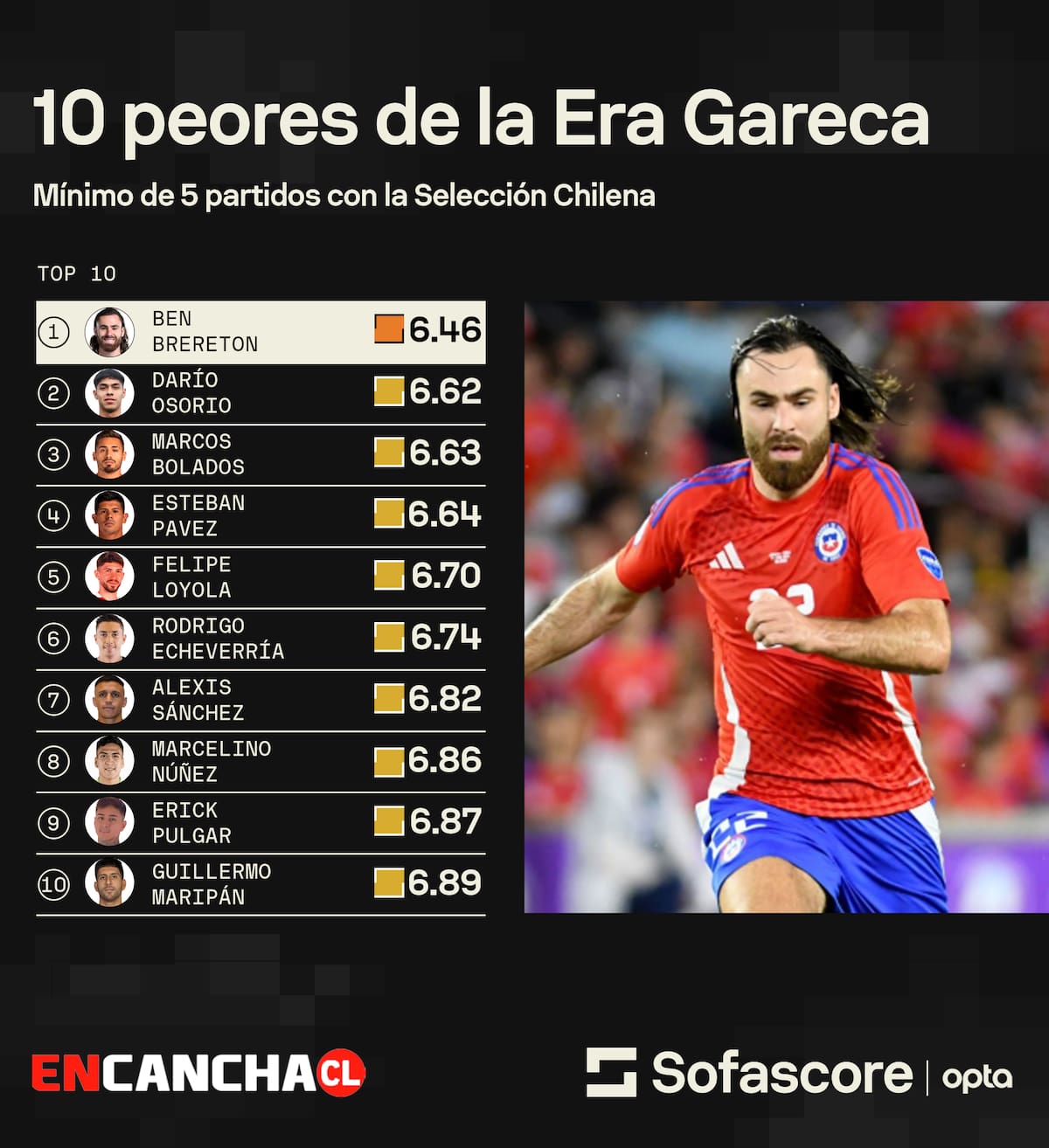 Pasamos, ahora, a esos jugadores que, por algún u otro motivo, no estuvieron a la altura de los desafíos de la Selección. Ahora, con el futbolista que menos rindió hay un gran pero, ya que conocida es que Gareca, de frentón “no le tiene buena” a Ben Brereton.