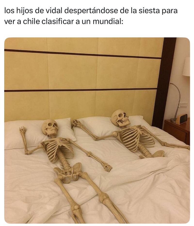 Pese a que ni siquiera disputó un solo minuto en la caída ante los altiplánicos, puesto que quedó suspendido por acumulación de tarjetas amarillas, Arturo Vidal fue el blanco de burlas, más aún recordado su reciente (y eliminado) tweet en X: “Descansen hijos míos. Papá tiene que trabajar y llevar a Chile al Mundial”.