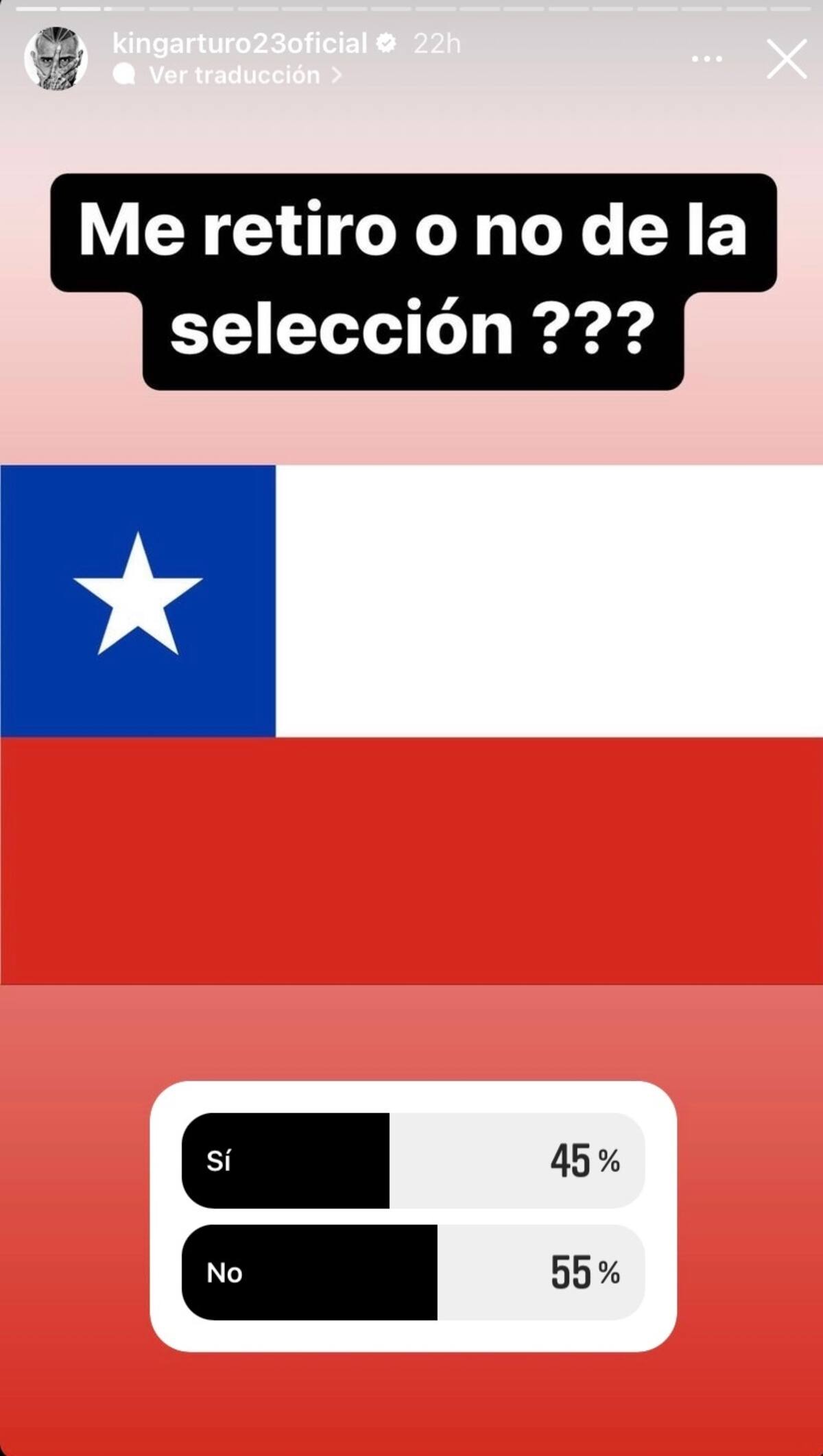 En la previa de los duelos amistosos de La Roja ante Polonia y Eslovaquia, Arturo Vidal planteó la interrogante sobre su futuro en la Selección Chilena. El volante realizó una encuesta en su cuenta de Instagram, sobre si era el momento de retirarse del combinado nacional, a lo que los usuarios, al momento de escribir este artículo, un 55% se manifestó con que dé un paso al costado.
