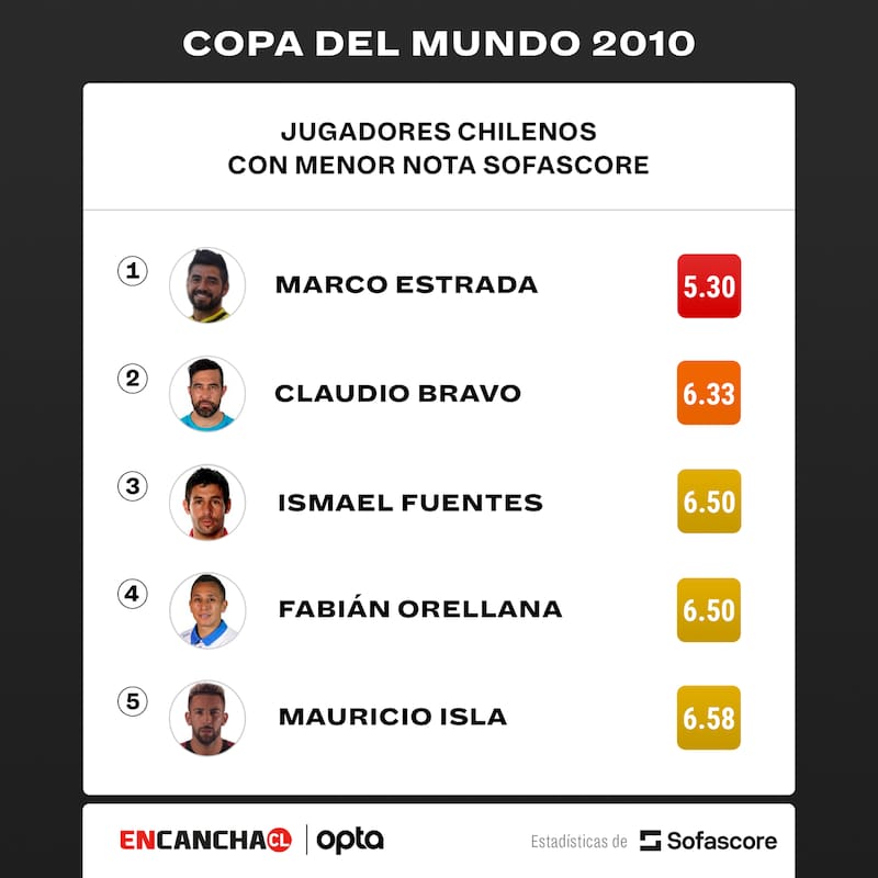 Y viendo a los mejores y peores jugadores de Chile en cada una de las apariciones, hay varios sorpresas y, sobre todo, nombres destacados e históricos de La Roja.