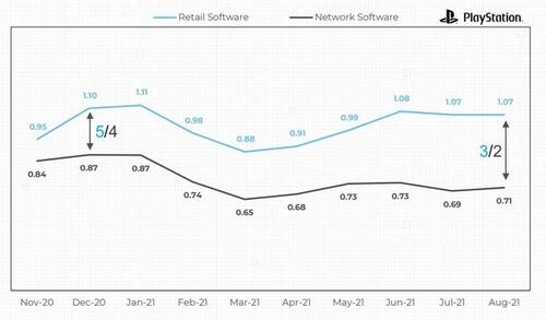 PlayStation 5 tiene variados juegos en formato físico, los cuales son preferidos por sobre los digitales. Según el portal Games Industry, un informe lanzado por Global Sales Data's, se analizó la venta de títulos entre noviembre de 2020 y agosto de 2021 en 23 países para los discos y 49 para las entregas que se descargan a través de PS Store.