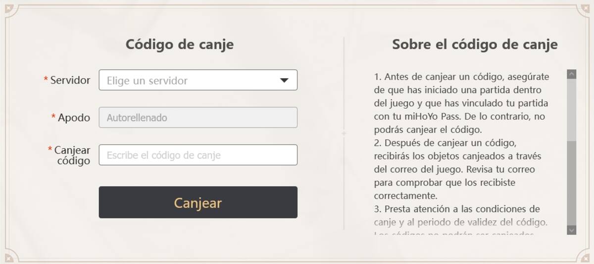 - Iniciar sesión con la cuenta de miHoyo.