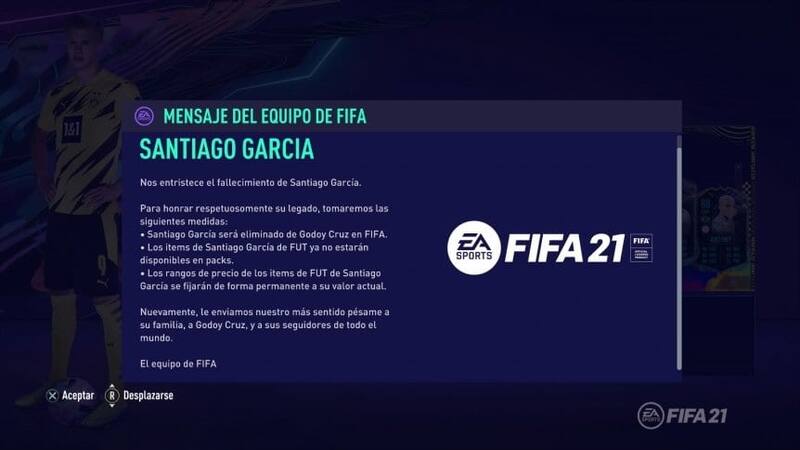 "Nuevamente, le enviamos nuestro más sentido pésame a su familia, a Godoy Cruz, y a sus seguidores de todo el mundo”, manifestó EA Sports a través del FIFA 21.