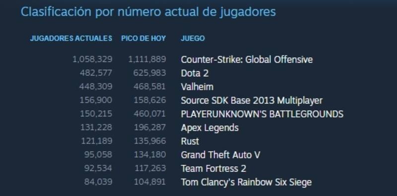 Debido a esto, Apex Legends se ubicó en el sexto lugar del ranking de usuarios en Steam y despachó en el top ten a los populares videojuegos como GTA V, Team Fortress 2 y Rust.