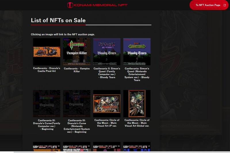 Esta primera colección de NFT se llama Konami Memorial NFT y será subastada el 12 de enero por OpenSea. Son 14 items con escenas de Castlevania en videos e imágenes del videojuego.