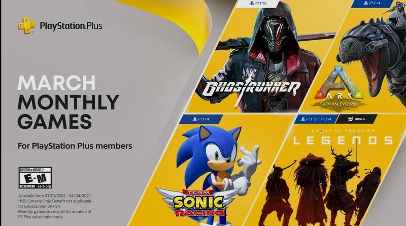 Las entregas para marzo de 2022 serán Ghostrunner, Ark: Survival Evolved, Team Sonic Racing y Ghost of Tsushima: Legends, videojuegos y contenido que tuvieron una tremenda evaluación de la crítica y que además fueron populares en su momento, debido a lo entretenido que son.