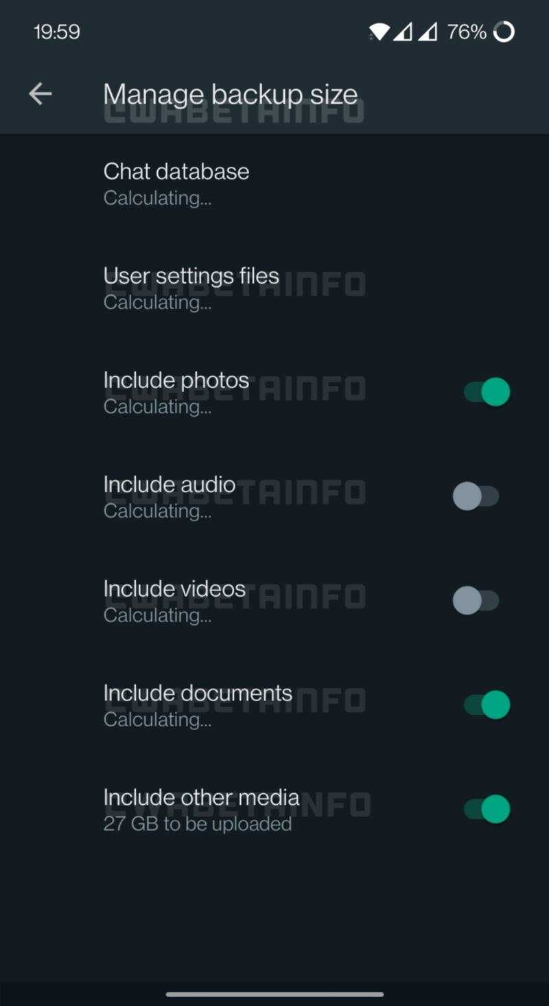 Lo que explica la web, es que WhatsApp permitirá que el usuario de la app de mensajería pueda seleccionar el tamaño de la copia de seguridad, lo que permitirá que el usuario pueda escoger qué respaldar y qué no.