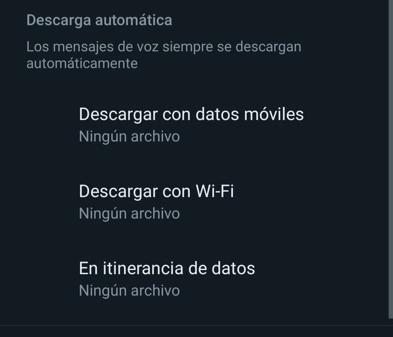 - Luego activar la opción "descarga automática" en sus tres opciones: Descargar con datos móviles, con Wi-Fi y con itinerancia de datos.