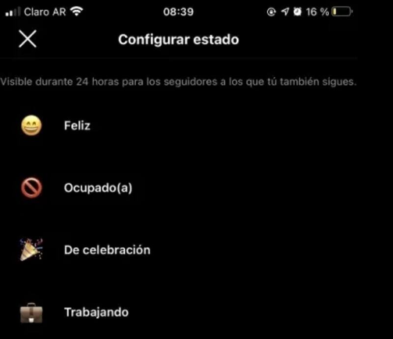 También como WhatsApp, estos se pueden configurar de manera muy simple. Duran 24 horas (tal como una storie) y un usuario puede colocar cualquier tipo de mensaje disponible, el que que será visible por otros cuando miren diversos perfiles.