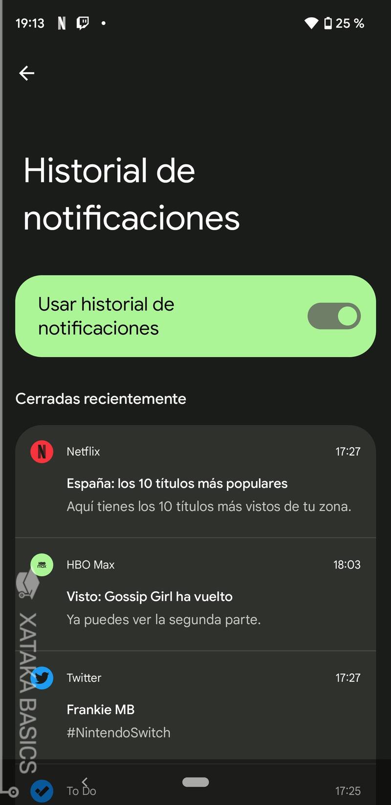 El historial de notificaciones es otro servicio que se puede activar en el sistema operativo Android 12, el cual sirve para consultar qué avisos hubo durante la jornada, para que el cliente no se pierda algo importante.