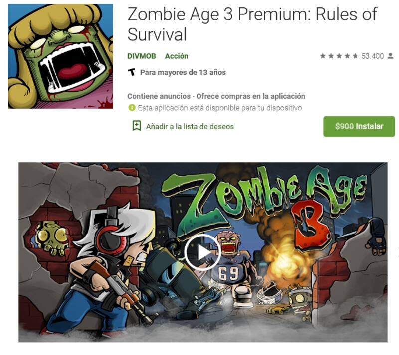 - Zombie Age 3 Premium: Rules of Survival: es un juego tipo beat 'em up, en el que con más 20 de personajes de la cultura pop a elección, se puede jugar solo como en cooperativo y así derrotar a variados enemigos.