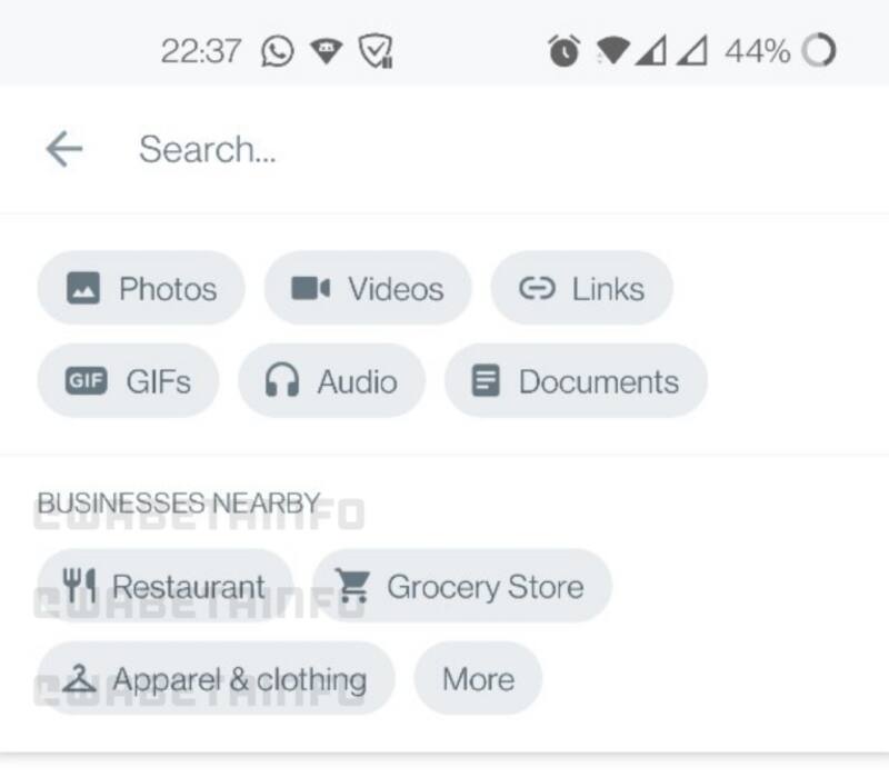 - En el campo de búsqueda tipo habrá fotos, chats, contactos y una sección de negocios, por lo que la app de mensajería será aún más completa.