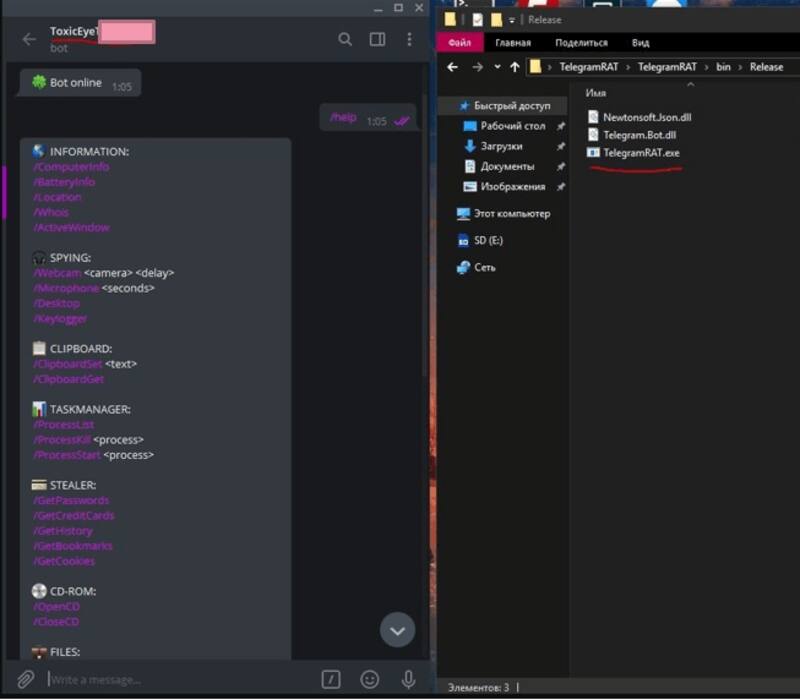 ToxicEye ingresa a través de un correo electrónico que se envía por cadenas de Telegram. Tras eso, instala un malware formato .exe, realizando las siguientes acciones: