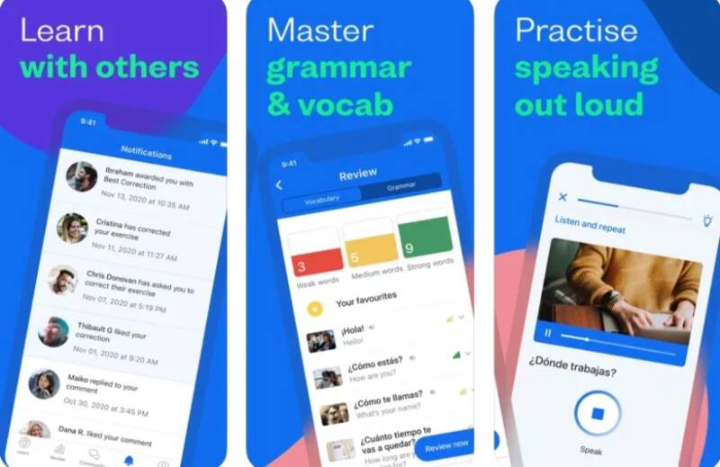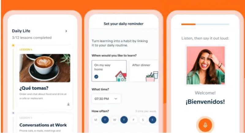 En esta App, el aprendizaje se enfoca en diversas situaciones de la vida cotidiana, en la que se puede escoger el nivel de los cursos. Lo que más se destaca es que te pone en contacto con otros usuarios para que estudien juntos.